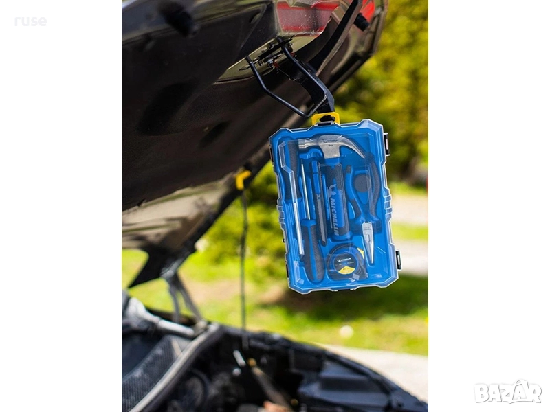 Комплектът включва: клещи, нож, ролетка, чук и две отвертки в практична пластмасова кутия. Стилен дизайн и висококачествени материали, гарантират идеалния помощник за От сглобяване на мебели до автомобилни ремонти или DIY проекти.