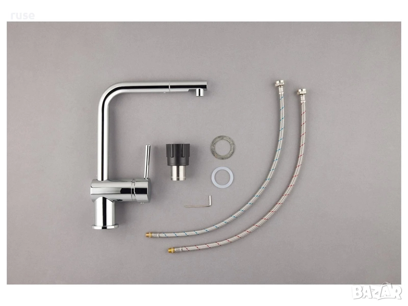 Съдържание на опаковката: 1 x кухненски смесител, 2 x 50 см свързващи маркуча