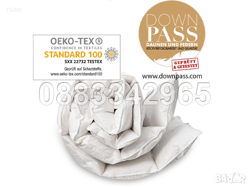 - DownPass печат гарантира чрез контролиране и ревизии изключителното качество на използваните патешки пух и пера от най-висок клас качество (съгласно DIN EN 12934)
