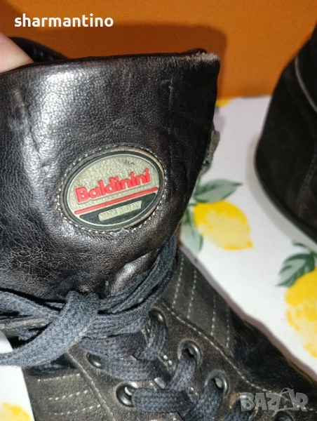* МАРКА/МОДЕЛ- оригинални маркови кожени сникърси Baldinini Italy в тъмно кафява естествена кожа.