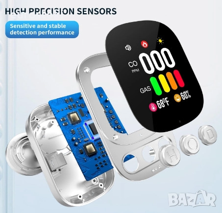 Висока производителност и дълъг експлоатационен живот. Детекторът за газ и CO използва принципа на електрохимична реакция и промяна на електрическото съпротивление на полупроводниците, за да открива въглероден оксид и горивни газове бързо и точно. Сензорите на това устройство имат висока производителност и дълъг експлоатационен живот от около 5 години.