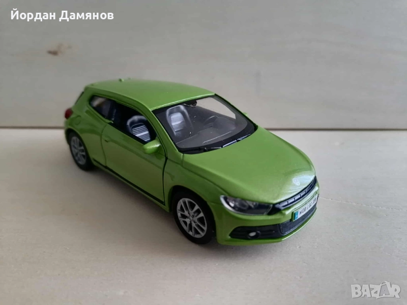 Фолксваген Сироко в мащаб 1:34 . Количката е чисто нова , извадена е от кутията само за снимките . За община Карнобат е възможно и лично предаване .
