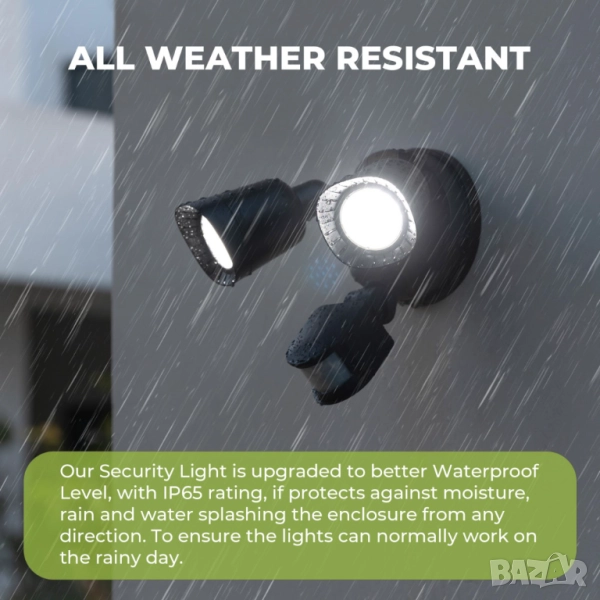 Устойчивост на атмосферни условия – Защита IP54 – лампата е устойчива на прах и пръски вода, идеална за монтаж на открит