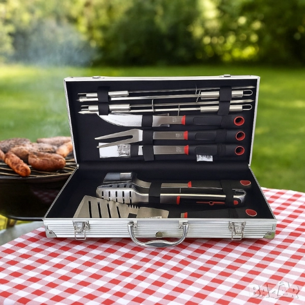 Продукт: Комплект от 11 инструмента за барбекю в куфар;