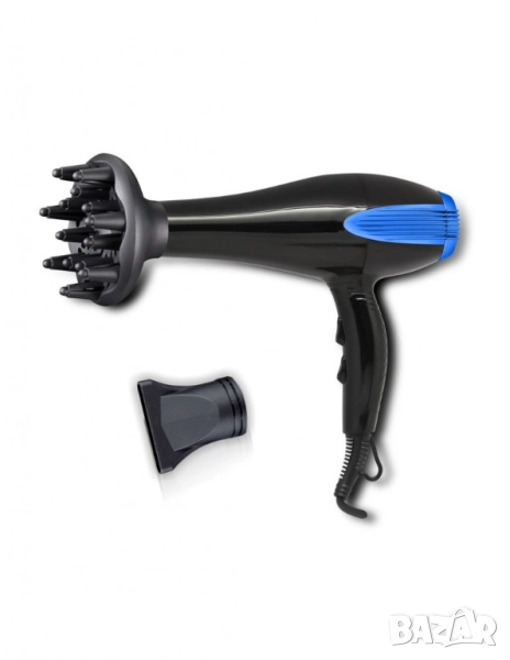 Сешоар с дифузер Rosberg, 2200W, 3 степени на температура, 2 скорости, Черен/син