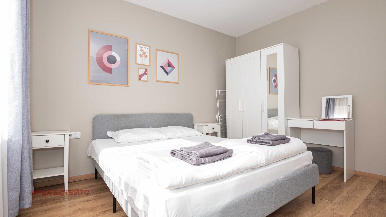 Апартаментът е напълно обзаведен и оборудван с всички необходими електроуреди, готов за нанасяне.