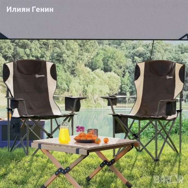Комплект от 2 сгъваеми стола Outsunny, сгъваеми къмпинг столове с подлакътници, поставка за чаши, облегалка за глава - 180.00лв.