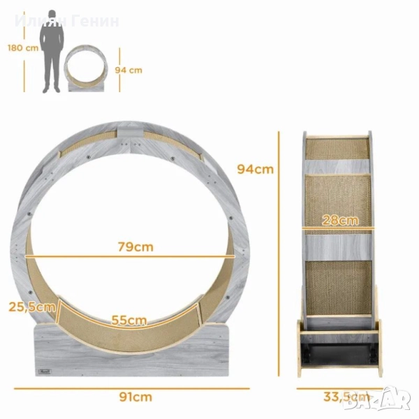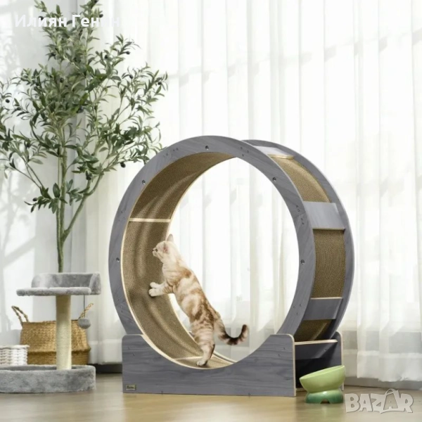 Колело за упражнения за котки, 91 см Колело за упражнения за котки със спирачка и подложка за драскане, Орех - 160.00лв.