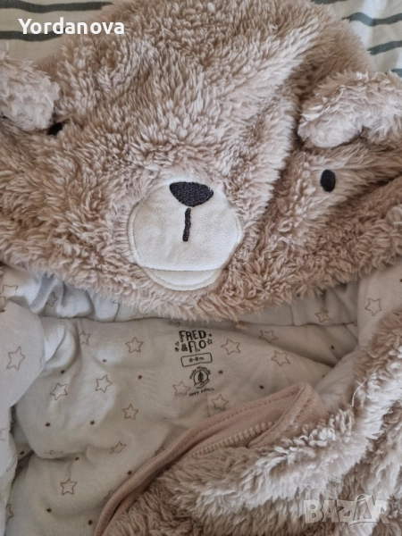 Обличан 2 пъти. В отлично състояние, без забележки. Марка - Fred & Flo - купуван от Англия. Размер - 6-9 месеца. Плътен, подходящ за по-студено време. Възможно договаряне на цената.