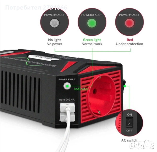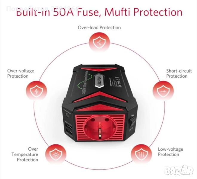 - Входно напрежение: 12V DC, Изходно напрежение: 220V~240V