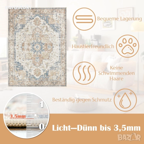 С издръжлива неплъзгаща се подложка, този килим остава здраво на мястото си - идеален за деца, домашни любимци и възрастни членове на семейството. Изработен от издръжливи синтетични влакна, той осигурява мека повърхност и надеждно сцепление.