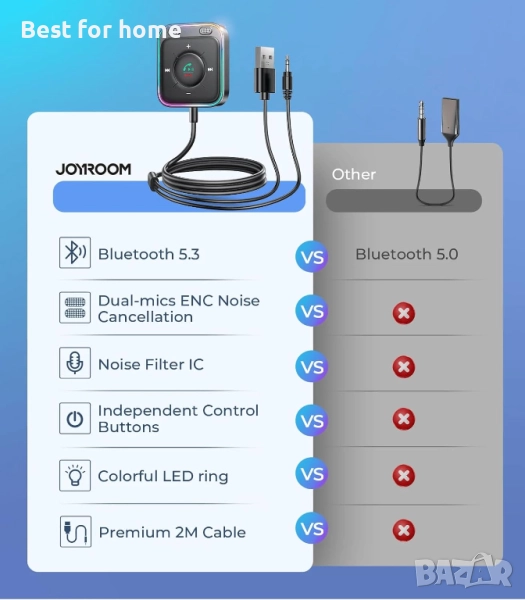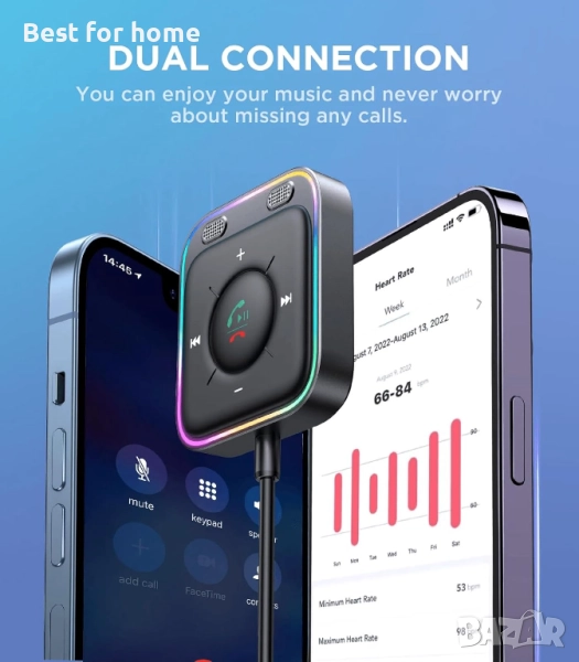 Специални функции 2-в-1 безжичен аудио приемник – Преобразува вашата автомобилна или домашна стерео система в Bluetooth система. Bluetooth 5.3 технология – Предлага по-бързо сдвояване, по-силна връзка и по-ниска латентност. Универсална AUX съвместимост – 3,5 мм жак е подходящ за повечето автомобили, високоговорители и аудио системи.