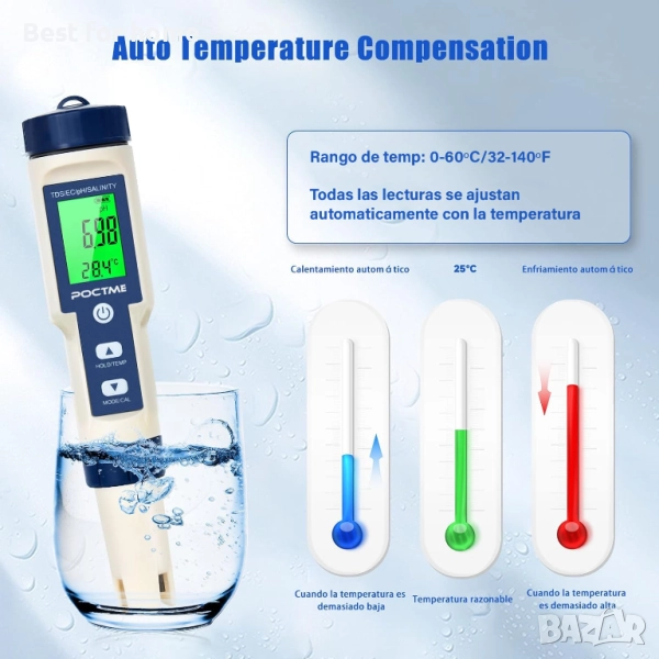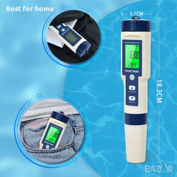 Poctme 5 в 1 тестер за вода - pH/TDS/EC/Соленост/Температура