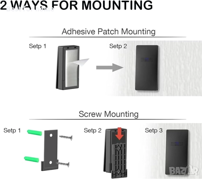 Устойчив на атмосферни влияния и лесен монтаж: Изработен от първокласен материал IP54, нашият звънец вирее на открито, издържайки на температури от -20°C до 60°C. Инсталирайте го без усилие навсякъде – вътре, на рамката на вратата, навън, в градината и др. Без сложна настройка; просто залепете превключвателя към вратата и включете приемника в контакта за безпроблемно изживяване.