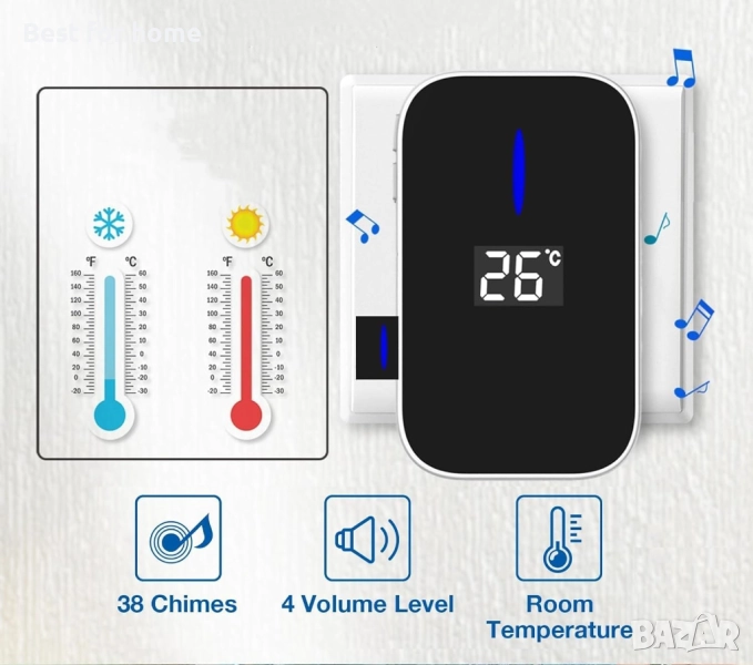 Умен и лесен за употреба безжичен звънец с термометър