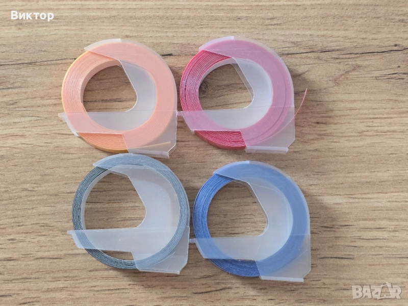 Здравейте, продавам пистолет за етикети с 4мцвята лента. пистолета е използван, може да се види колко от ролките остава на последната снимка.