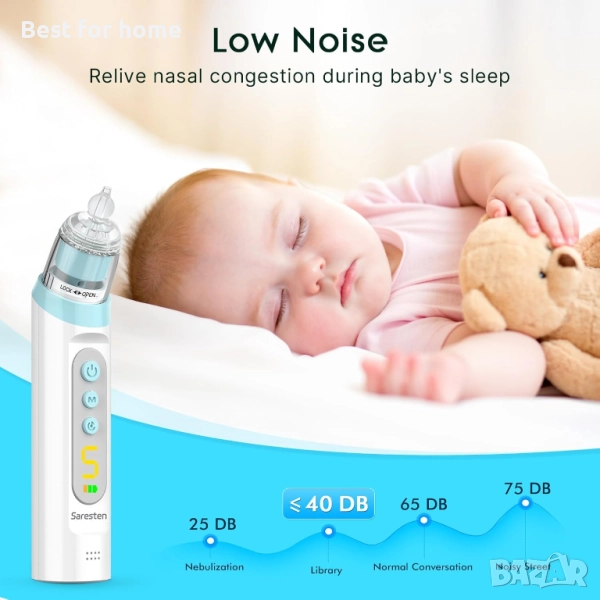 Силно и регулируемо засмукване. Този бебешки назален аспиратор осигурява 5 регулируеми нива на засмукване за различни нужди, максимално до 75kPa, ефективно премахва бебешките изпражнения и слуз, позволявайки на бебето ви да диша гладко и да спи комфортно.