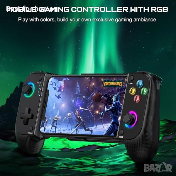 HASACOOL Мобилен геймърски контролер за Android/iPhone, RGB Light Hall Effect Joystick Безжичен телефонен контролер-PS Remote Play/Xbox Cloud/Steam Link/GeForce Now/MFi Apple Arcade-Call of Duty, Roblox