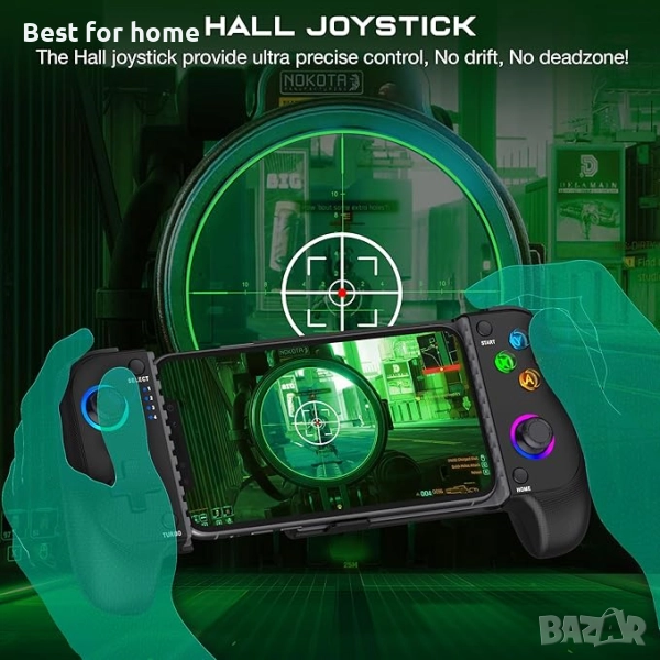 HASACOOL Мобилен геймърски контролер за Android/iPhone, RGB Light Hall Effect Joystick