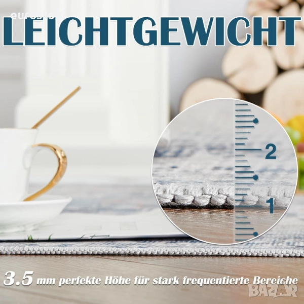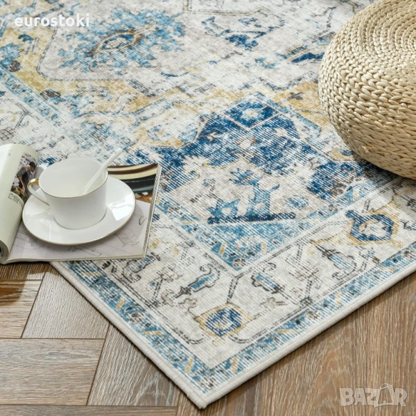 С издръжлива неплъзгаща се подложка, този килим остава здраво на мястото си - идеален за деца, домашни любимци и възрастни членове на семейството. Изработен от издръжливи синтетични влакна, той осигурява мека повърхност и надеждно сцепление.