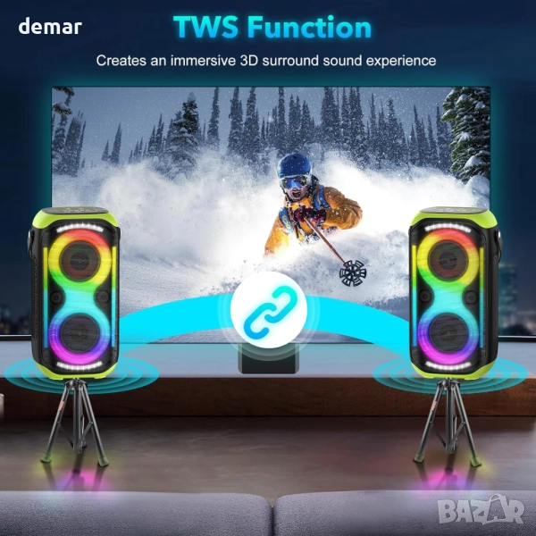 TYOTY Bluetooth високоговорител 160W, 12000 mAh, TWS, LED светлини
