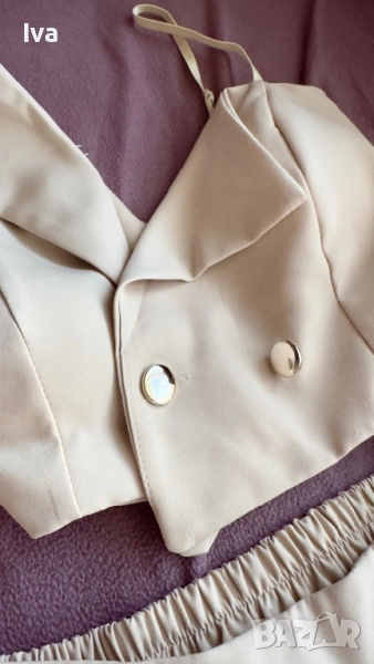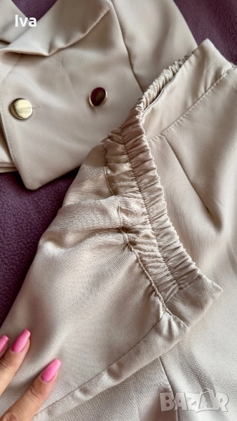 Елегантен бежов костюм в две части - размери XS, S → Обява 51856743