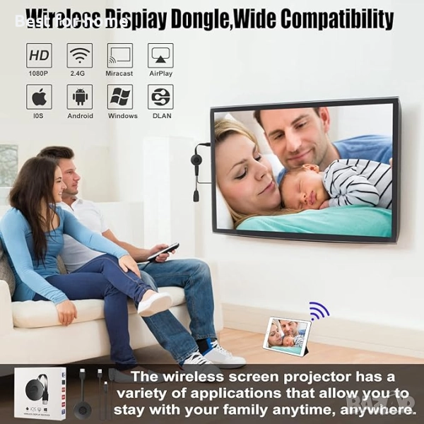 【Висококачествена картина】Безжичният дисплейен адаптер проектира ясни и деликатни изображения, открийте аудио-визуално пиршество със семейството си, насладете се на прекрасния голям екран и прекарайте топло време заедно. Адаптерът Miracast е подходящ за гледане на видео филми, играене на компютърни игри, домашно забавление/бизнес/образование/обучение. Освежете сетивното си преживяване и споделете прекрасни моменти.