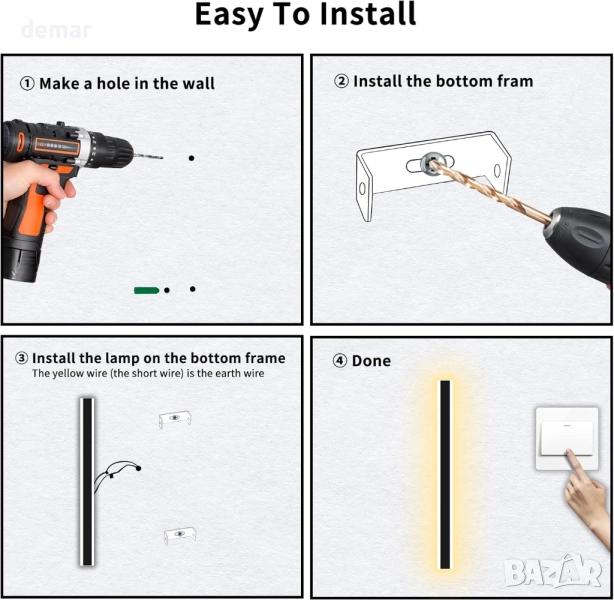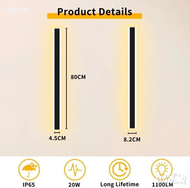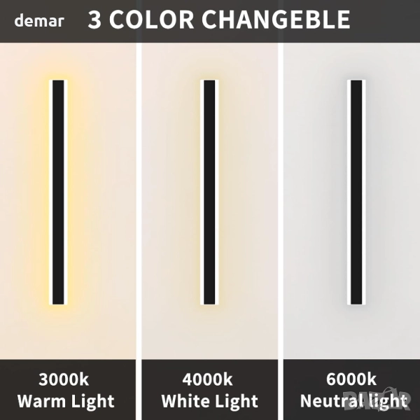 Тази LED стенна лампа съчетава модерен дизайн с практична функционалност, предлагайки три цветови опции (топъл, бял и неутрален) и регулируема яркост от 5% до 100% чрез дистанционно управление. С мощност 32W и водоустойчива защита IP65, тя осигурява надеждно осветление на закрито или на открито при всякакви метеорологични условия. Лесна за монтаж вертикално или хоризонтално, тя е подходяща за различни декоративни стилове и е идеална за пространства като градини, гаражи, коридори или вили.