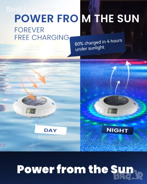 【Двойно по-голям соларен панел】Голямият соларен панел се зарежда 100% по-бързо от стандартните осветителни тела за басейни. Вградената акумулаторна батерия осигурява два пъти по-голяма яркост, като същевременно осигурява 3-6 часа работа. Работи добре дори след дъждовни дни. Нулева поддръжка, никакви кабели!