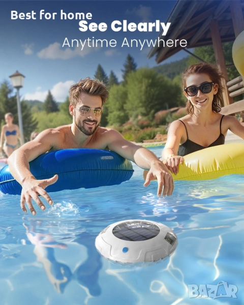 【Отчитайте температурите от вашия шезлонг】Два екрана, наклонени на 45°, показват температурата на водата в реално време, без да се навеждате. Без десетични знаци – показва удебелени 84°F вместо 84,2°F за незабавна яснота (видимост от 6 метра).