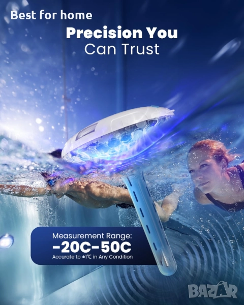 【Прецизност, на която можете да се доверите】Лабораторно тествана точност от ±1.8°F (-4°F до 140°F). Знайте ТОЧНО кога да загреете спа центъра си или да охладите басейна – никога повече не гадайте условията за плуване!