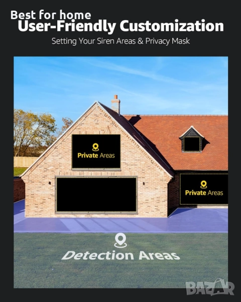 【Разпознаване на хора и превозни средства и подобрена поверителност】 Тази PoE IP камера следи движението на хора и превозни средства с усъвършенствани функции с изкуствен интелект, като интелигентно разпознаване с точност до 99%, минимизирайки фалшивите аларми от приложения. Освен това, можете да маскирате личните си места с цифрови воали, за да защитите поверителността си.