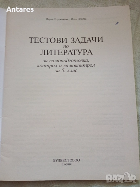 Тестови задачи по литература за 5 клас.Добре запазен.