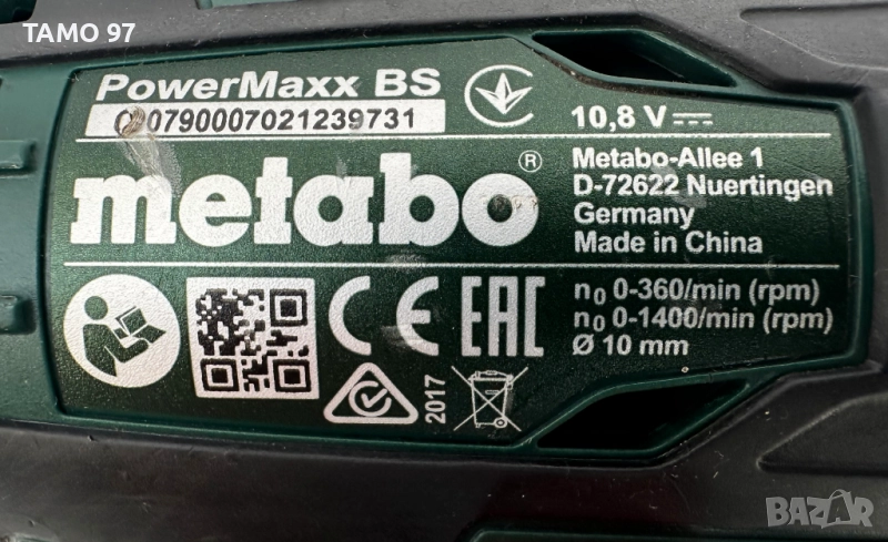 Марка и модел: Metabo PowerMaxx BS