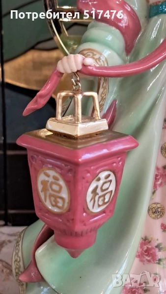 Една изящна порцеланова фигура, украсена с щастливия китайски йероглиф "Фу"