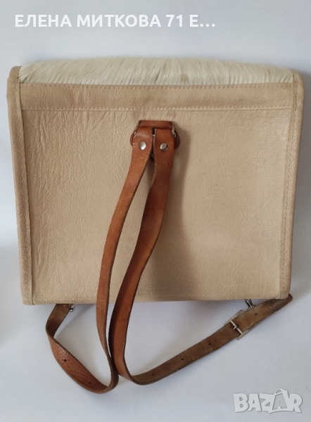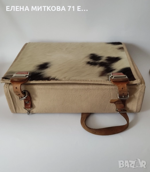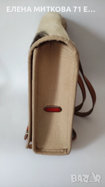 Винтидж швейцарска кожена раница с капак от кравешка кожа