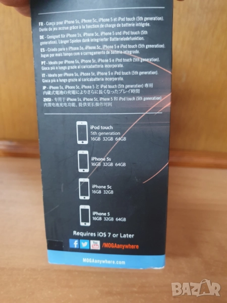 Контролерът е съвместим с 5-та генерация iPhone устройства (iPhone 5, 5c, 5s, iPod Touch). Ако имате стар телефон от тази серия, това е най-подходящият начин да го превърнете в идеалната преносима гейм конзола с хилядите игри, които могат да се свалят от Apple App Store и да вървят без проблеми на него.
