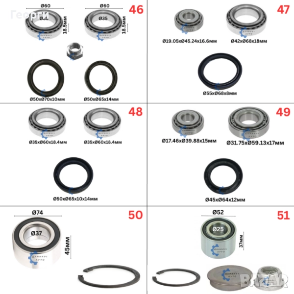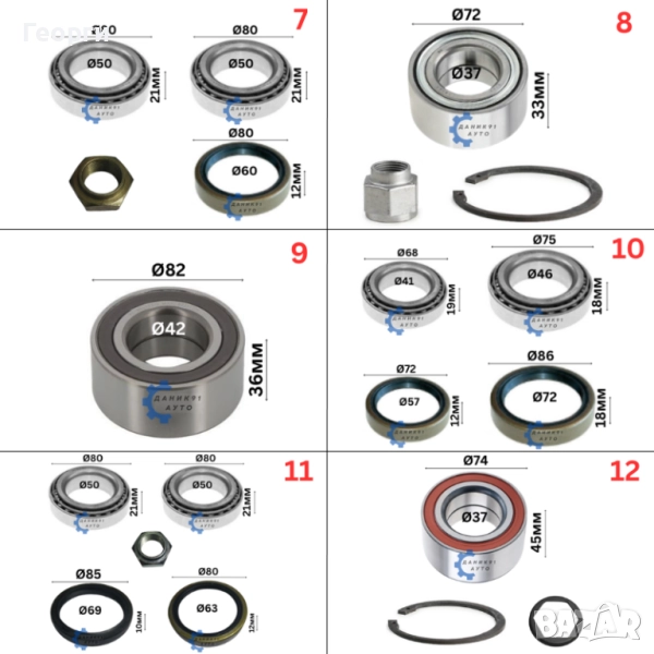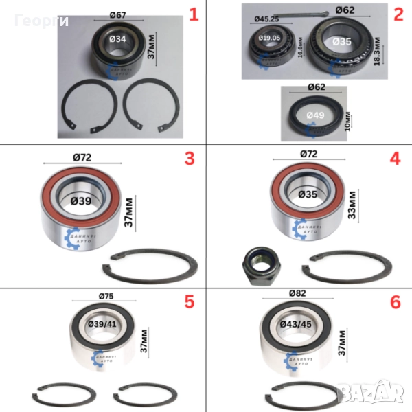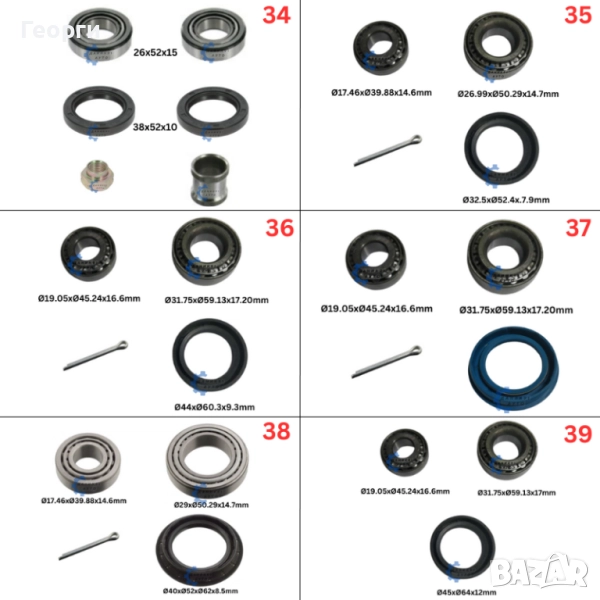 16. Колесен лагер предна главина Audi 50 Vw Derby I, II, Polo I, II Ф34 Ф62 37мм - комплект - 24,00 лв. ( 12,27 € )