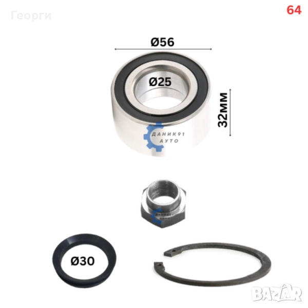 56. Колесен лагер предна главина Vw Golf, Jetta, Caddy Ф34 Ф64 37мм - комплект - 19,00 лв. ( 9,71 € )