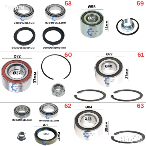 62. Колесен лагер задна главина Citroen Jumper, Fiat Ducato, Peugeot Boxer Ф30 Ф40 - комплект - 29,00 лв. ( 14,83 € )