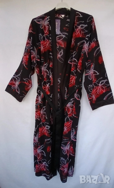 Дамски копринен луксозен цветен дълъг пеньоар.Нов.
