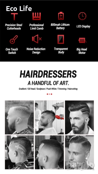 【Мотор с 6500 об/мин】: Скоростта на двигателя на професионалните машинки за подстригване за мъже е с 85% по-висока от пазарната, което ви дава 2 пъти по-бързо, но по-тихо изживяване от обикновените мъжки машинки за подстригване.