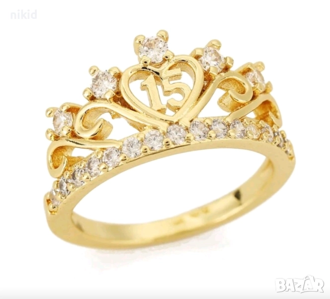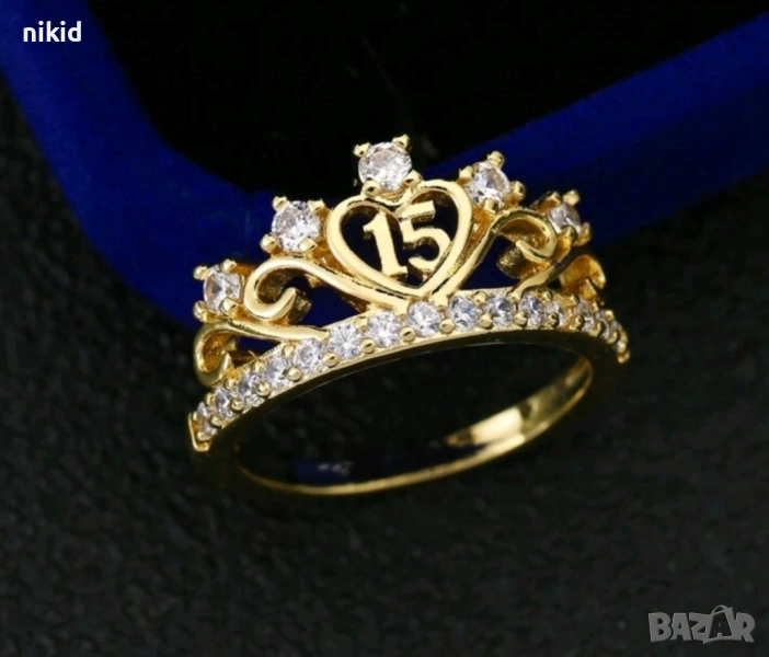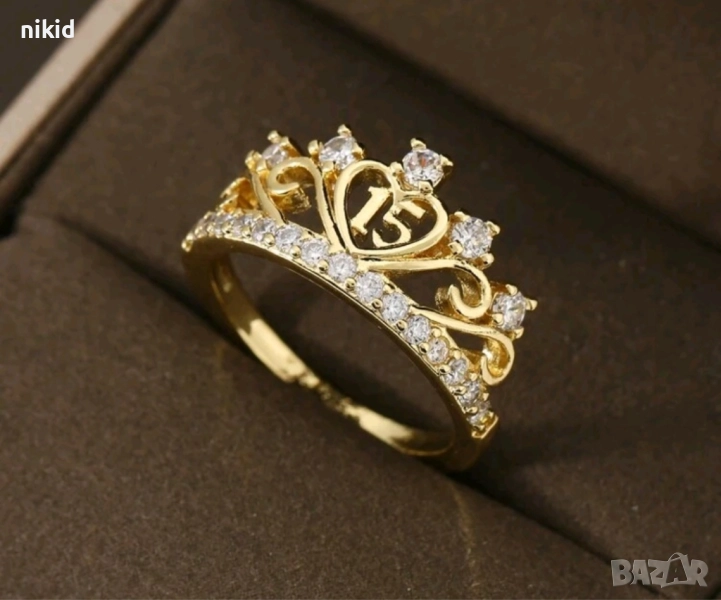 15 години годишна златист пръстен с камъчета → Обява 51861399