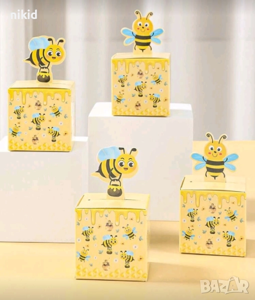 Пчела ПЧЕЛИ стичащ мед картонена кутия кутии за лакомства подарък рожден ден парти картонени кутийки → Обява 51861637