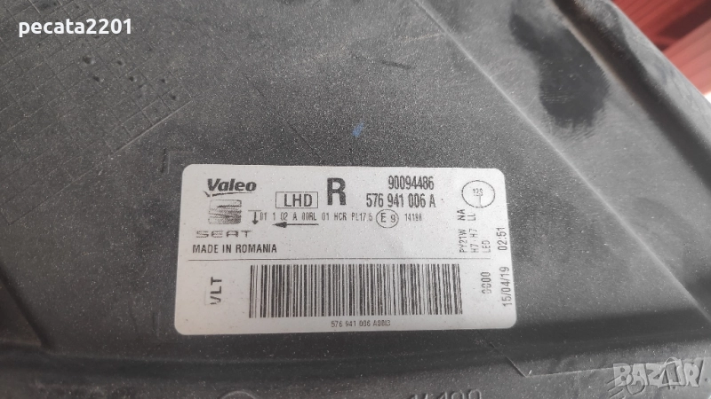 Продавам - оригинален десен фар за Сеат Атека (Seat Ateca) 2019 г. Фара е със здраво стъкло и корпус, оборудван с крушки и капачки, с една забележка - има едно счупено краче (вижда се на снимката), всичко друго по фара е ок. Оригиналния номер е 576941006A. Цена - 180 лв.