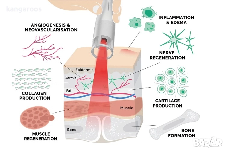 🔹 Това води до ускорено заздравяване на рани, както и до драматично намаляване на болката, възпалението и образуването на белези. За разлика от всички други методи на лечение, лазерната терапия всъщност „лекува“ тъканите, осигурявайки мощна, непристрастяваща форма на управление на болката.