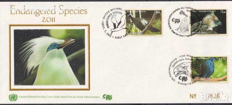 1. Първодневен плик Фауна Птици 2011 от ООН. Ф23 - 23 Цена 9,80 Евро (сн. 1)