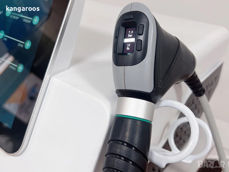 Вграден бутон Старт/Стоп, бутон за регулиране на интензитета и честотата и екран, показващ интензитета, честотата и броя на изстрелите в реално време.