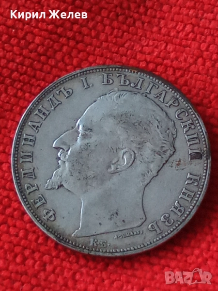 ДържаваБългарияПериодКняжество България 1878 - 1907УправникФердинанд IВалутаБългарски левТип монетаМонети в обращениеНоминал5 леваЦена на метала25 XAGg x 0,900 = 56 BGNГодина1894МеталСребро 0.900Тип на ръбаНадписанОписание на ръбовете'Боже пази България'ФормаКръгОриентацияМонета (180°)Тегло (g)25Диаметър (mm)37Дебелина (mm)2,9