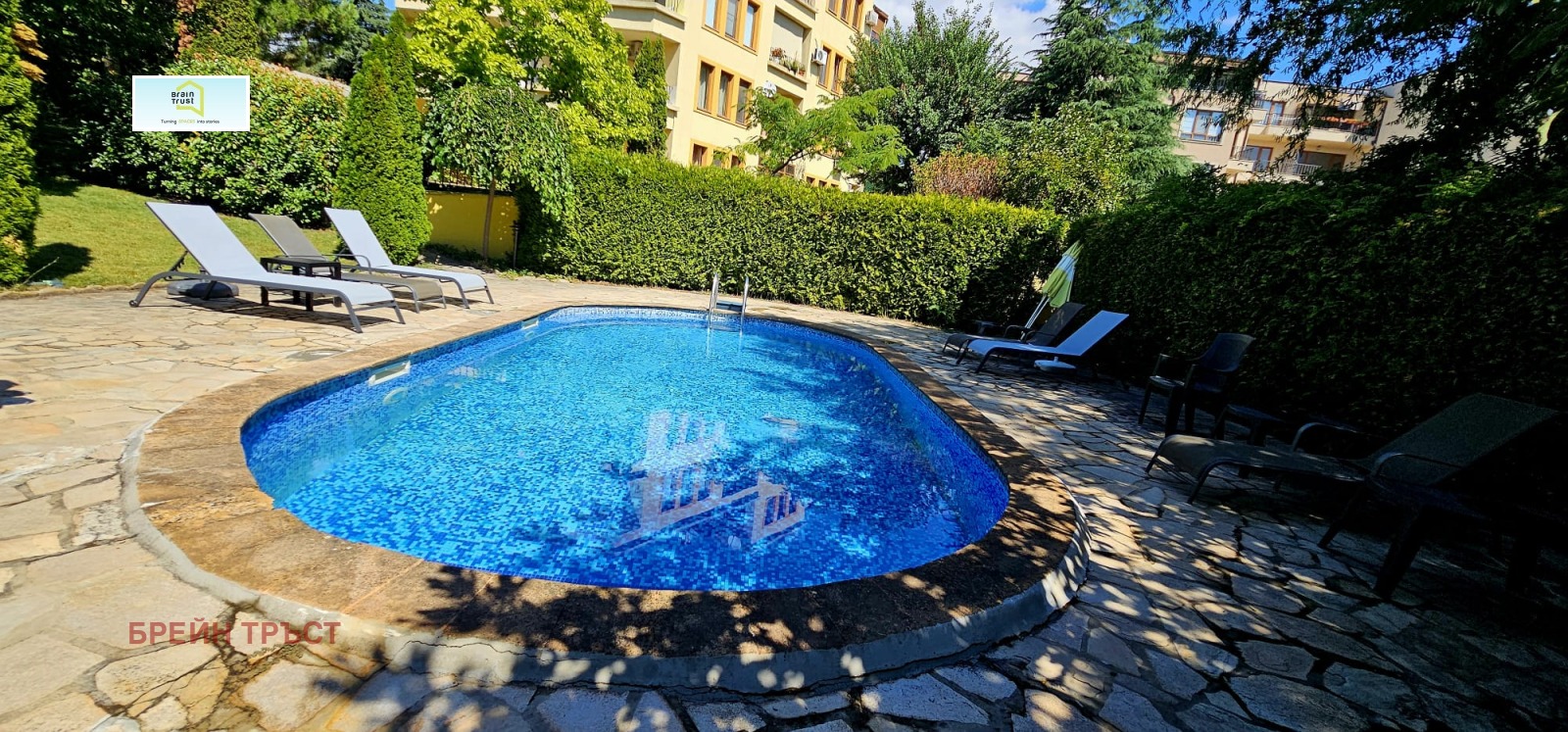 Към апартамента има и осигурено паркомясто. Жилището е част от затворен жилищен комплекс, към който има и басейн, скрит сред зеленината на природата.